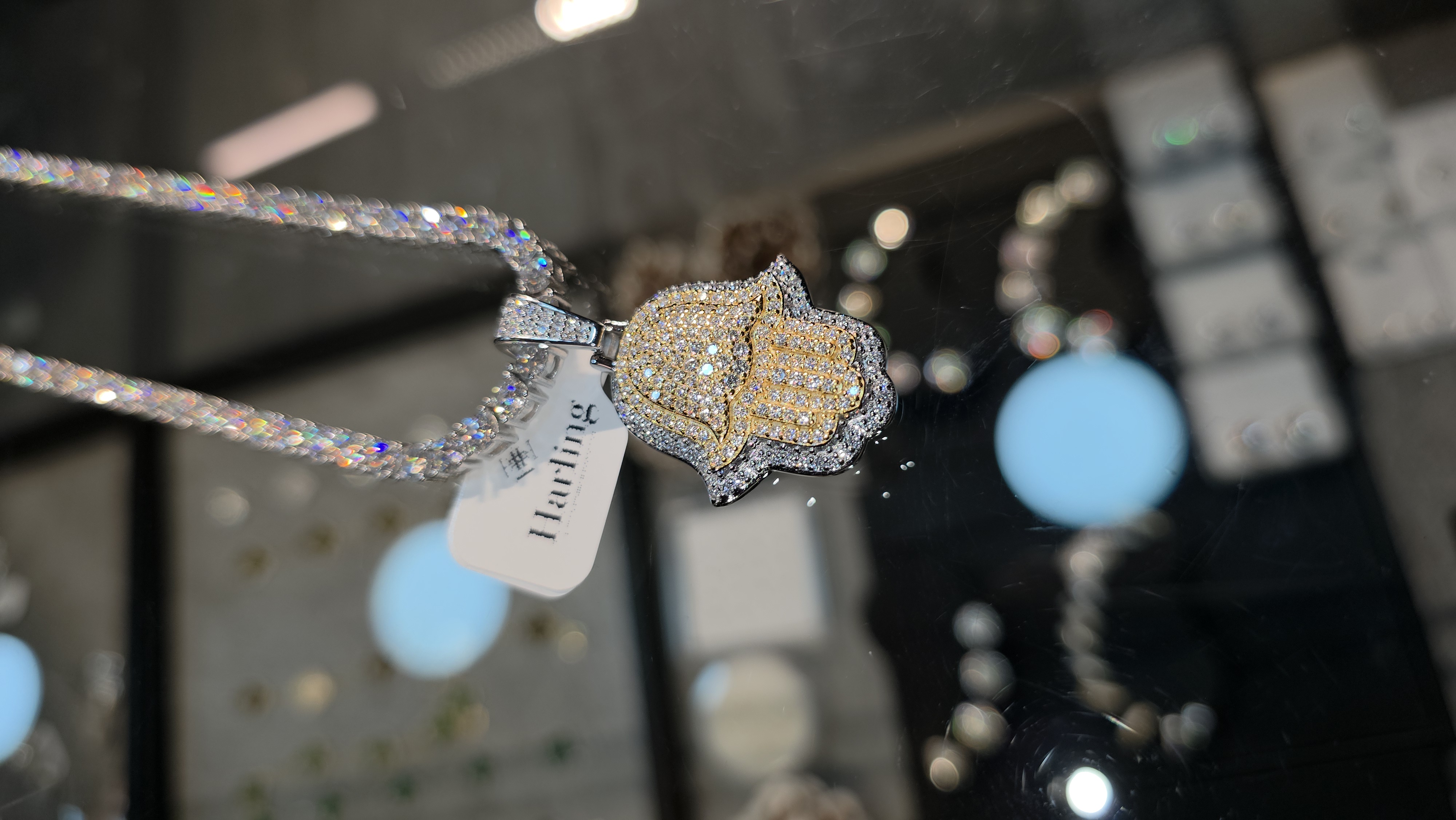 MEDALLA MANO DE FATIMA PLATA LEY 925 MOISSANITE DOBLE LAYER