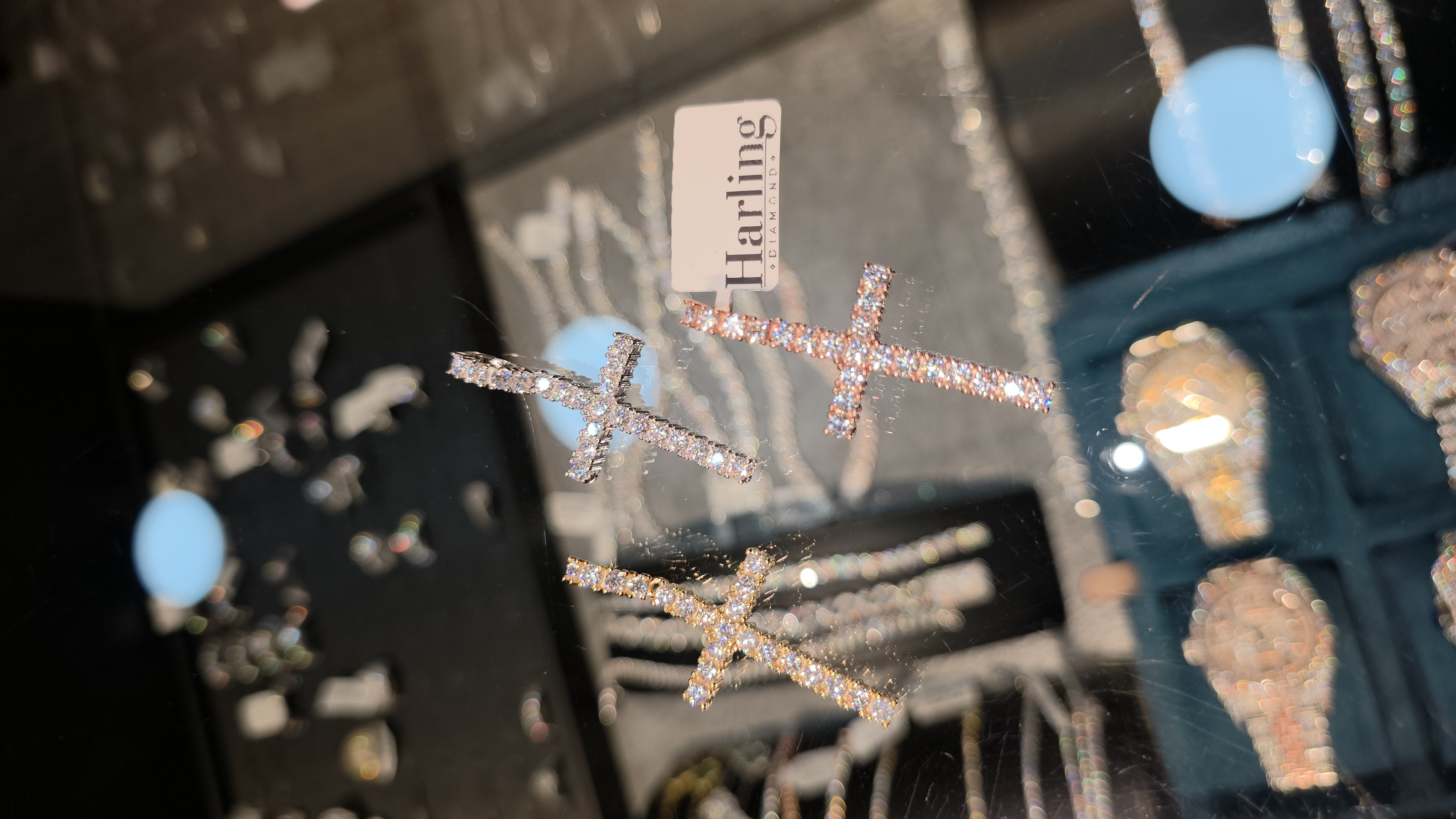 Medalla Cruz Tennis 3MM con Moissanite en Plata Ley 925