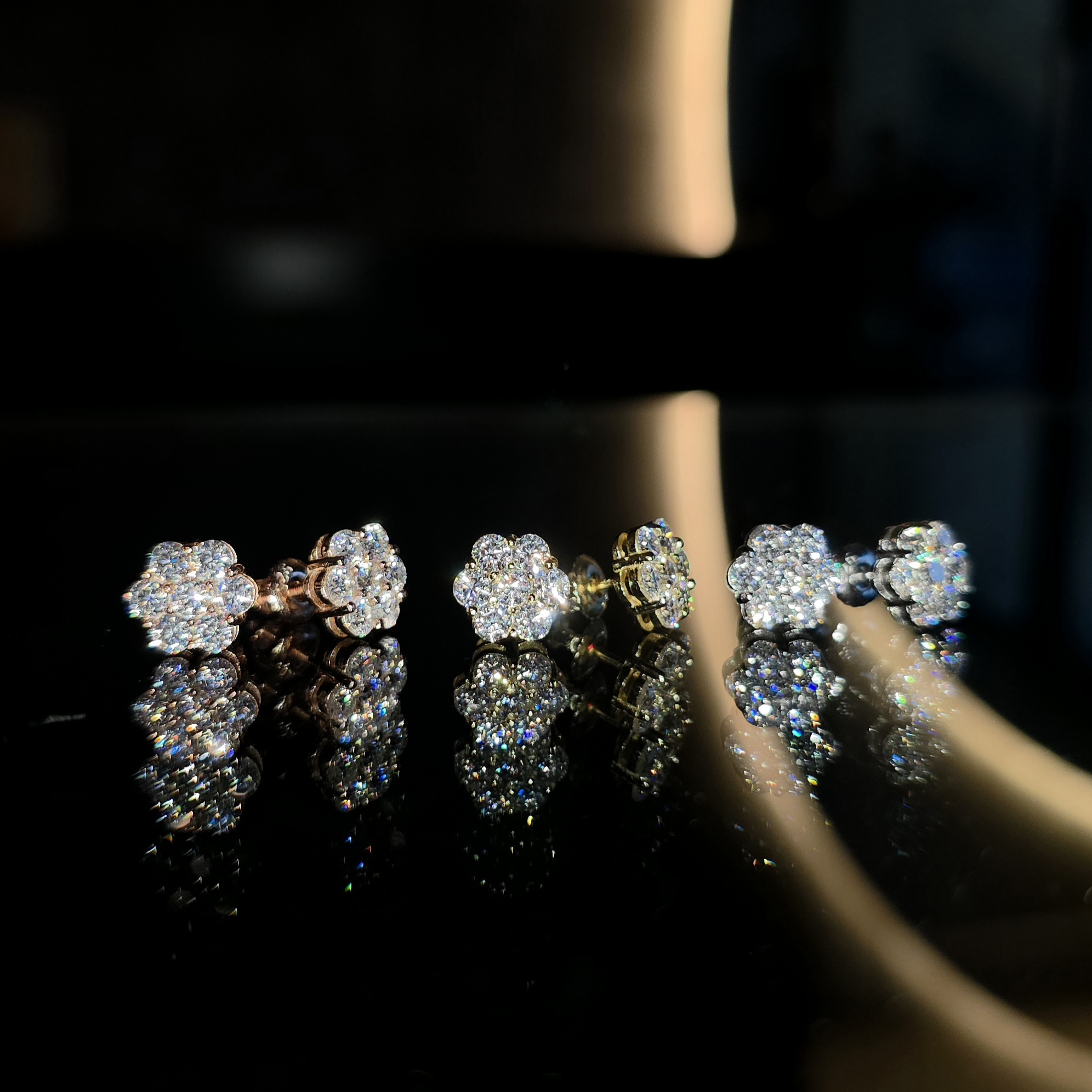 ARETES FLOR CON MOISSANITE EN PLATA LEY 925